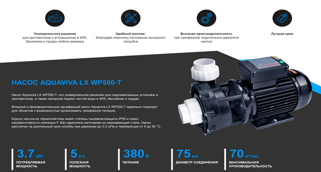 Насос Aqualine LX WP500-Т без префильтра эффективно используется для напорной подачи и циркуляции воды. Применяется для организации противотоков и атракционов в СПА, ваннах, бассейнах. Модель изготовлена по современной технологии с использованием долговечных термостойких, антикоррозийных материалов.